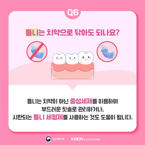 Q6. 틀니는 치약으로 닦아도 되나요?