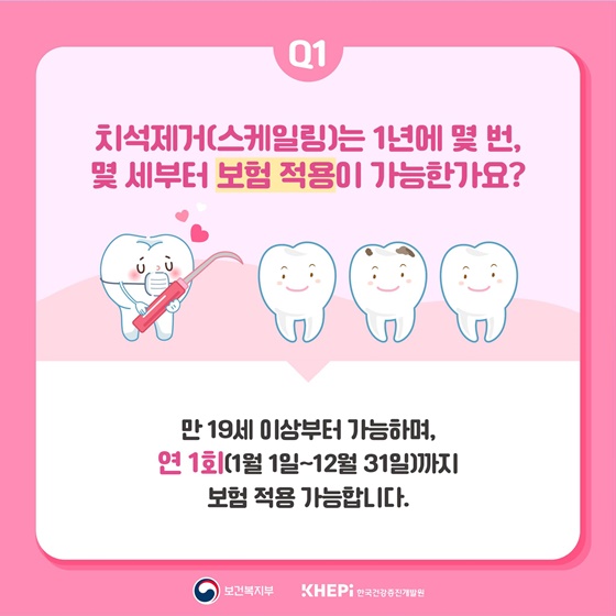 Q1. 치석제거(스케일링)는 몇 번, 몇 세부터 보험 적용이 가능한가요?