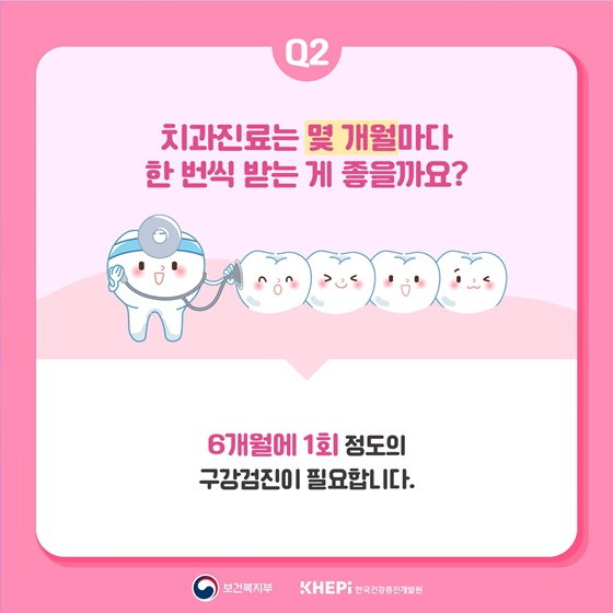 Q2. 치과진료는 몇 개월마다 한 번씩 받는 게 좋을까요?