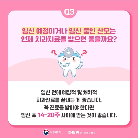 Q3. 임신 예정이나 임신 중인 산모는 언제 치과진료를 받으면 좋을까요?