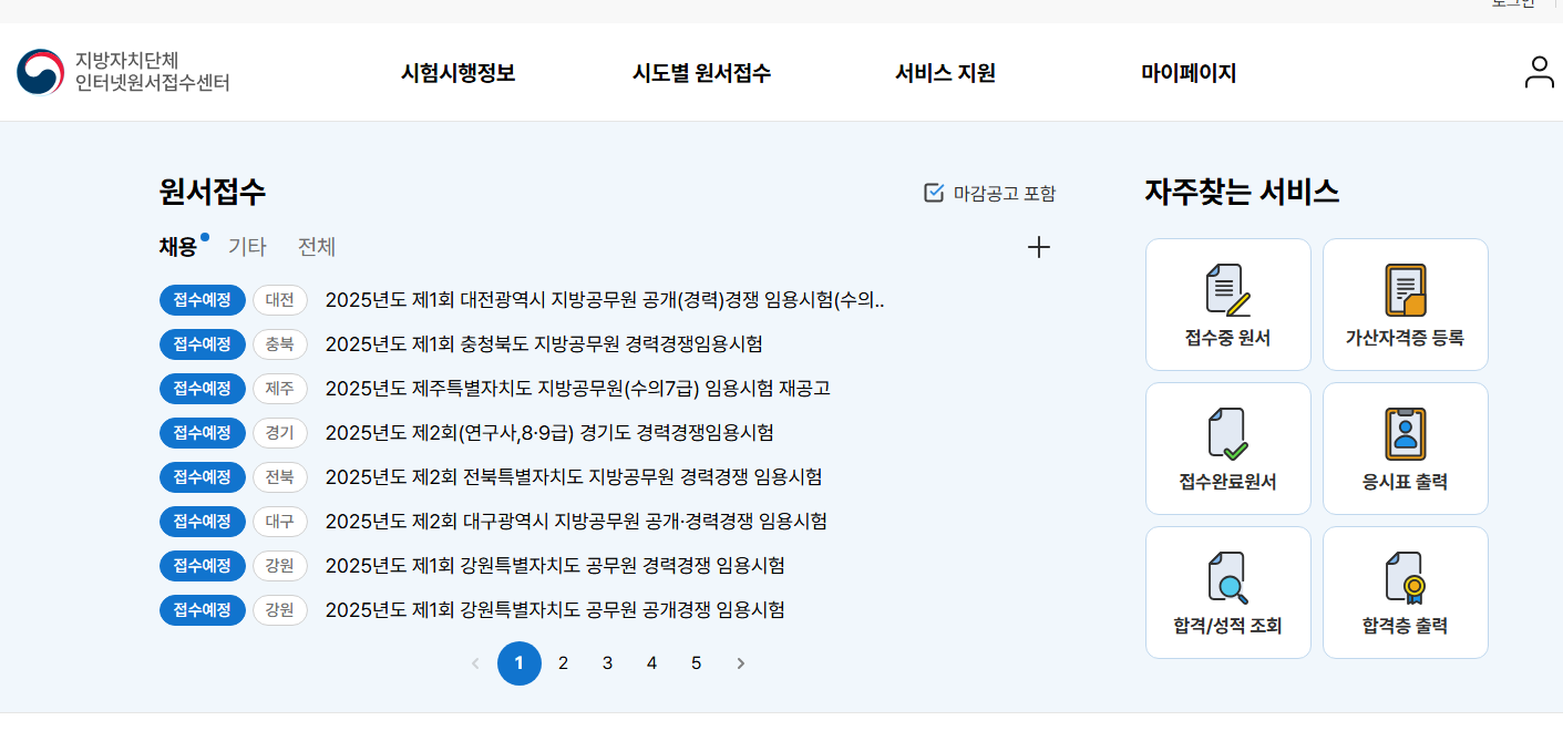 원서 접수는 지방자치단체 인터넷원서접수센터를 통해 진행됩니다. 접수 기간과 방법은 각 지방자치단체별로 상이하므로, 반드시 해당 지자체의 공고문을 참고해야 합니다.